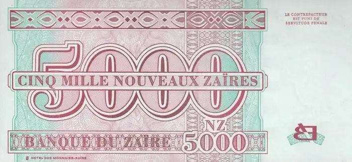 Zaire 5.000 Nouveaux Zaires Fe
