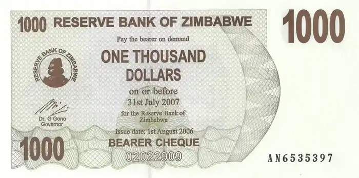 Zimbabwe 1.000 Dólares Fe