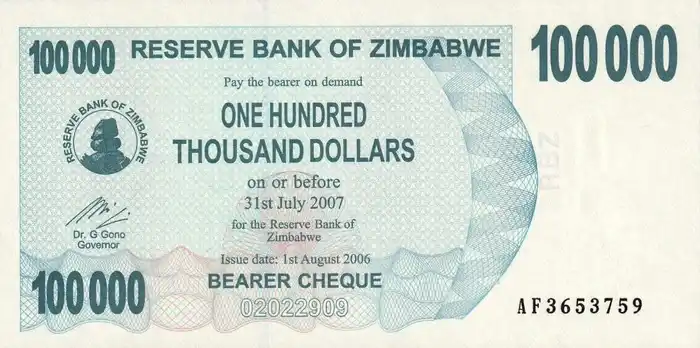 Zimbabwe 100.000 Dólares Fe