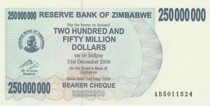 Zimbabwe 250.000.000 de Dólares Fe