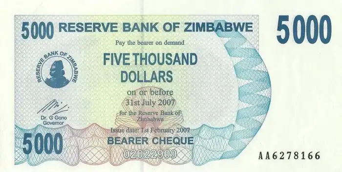 Zimbabwe 5.000 Dólares Fe